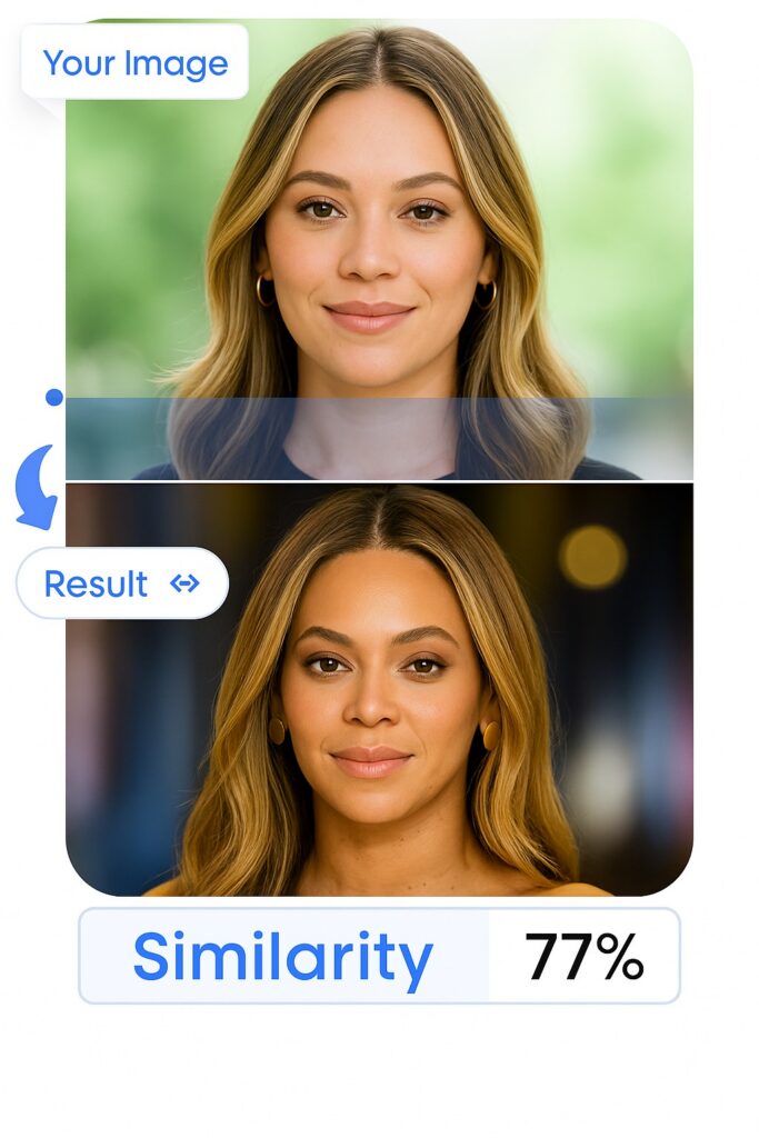 O banco inclui milhares de celebridades internacionais para comparação. Cada análise fornece porcentagens detalhadas de semelhança.